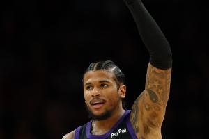 体育资讯4月18日讯 太阳111-96击败勇士,赛后,太阳后卫杰伦·格林接受媒体采访,他本场打出生涯代表作,8个三分平附加赛球员单场历史纪录。